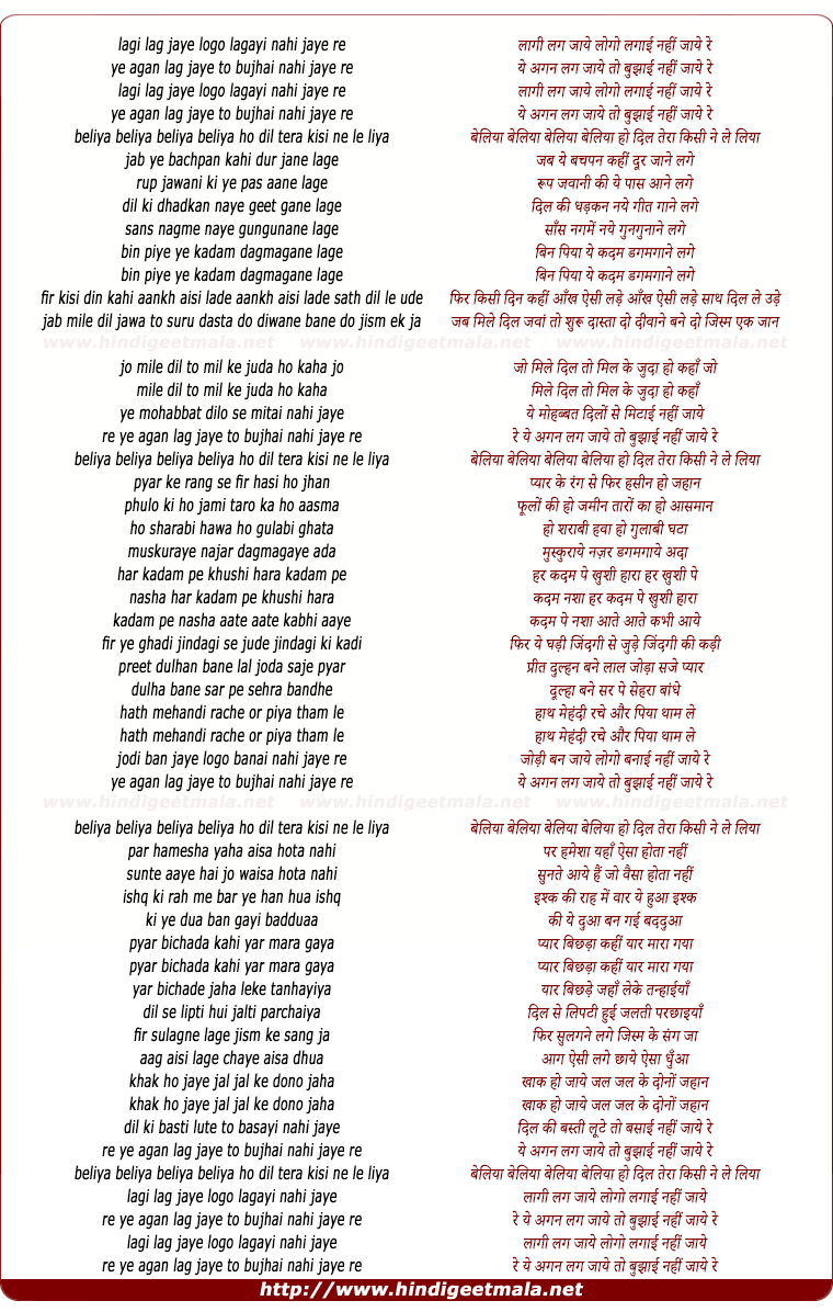 Lyrics of Lagi Lag Jaye Logo Lagayi Nahi Jaaye Re - लागी लग जाये लोगो लगाई नहीं जाये रेlagi lag jaye logo lagayi nahi jaye re