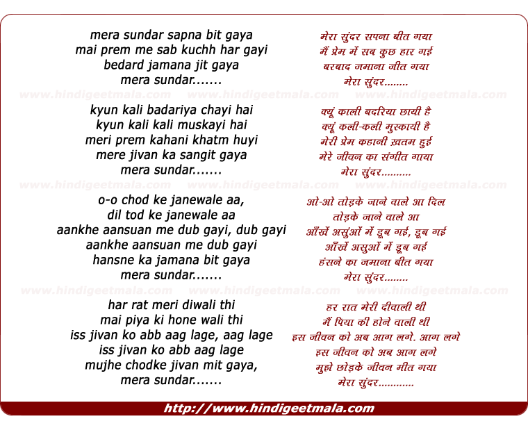 Lyrics of Mera Sundar Sapna Bit Gaya - मेरा सुन्दर सपन बीत गयाmera sundar sapna bit gaya