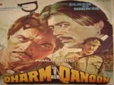 | Film cast: | Dharmendra, Rajesh Khanna, Jaya Prada, Danny Denzongpa, Asha Parekh, Mazhar Khan, Supriya Pathak, Vinod Mehra, Birbal, Mohan Choti, Iftekhar, Manmohan Krishna, Dheeraj Kumar, Ram Mohan, Paresh Rawal, Om Shiv Puri | | Singer: | Alka Yagnik, Kishore Kumar, Manhar Udhas, Asha Bhosle, Shailendra Singh, Vani Jayaram, Bhupinder Singh | | Lyricist: | Anjaan, Bhushan Banmali, Farooq Qaiser, Ravinder Rawal | | Music Director: | Kalyanji Anandji | | Film Director: | Jyoti | | Film Producer: | Pranlal Mehta | | External Links: | Dharam Aur Kanoon at IMDB Dharam Aur Kanoon at Wikipedia | | Watch Full Movie: | Dharam Aur Kanoon at YouTube |