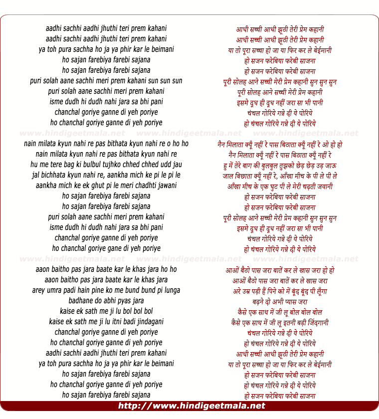 Lyrics of Aadhi Sachhi Aadhi Jhuthi Teri Prem Kahani - आधी सच्ची आधी झूठी तेरी प्रेम कहानीaadhi sachhi aadhi jhuthi teri prem kahani