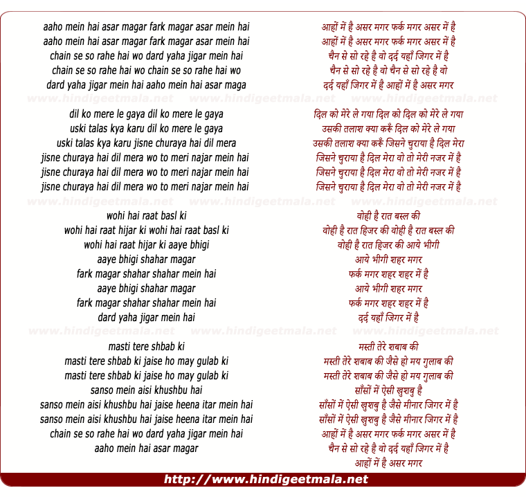 Lyrics of Aahon Me Hai Asar - आहों में है असर मगर फर्क मगर असर में है