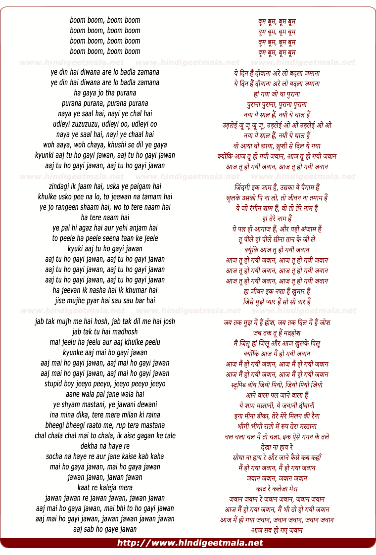 Lyrics of Aaj Mai Ho Gayi Jawan - आज मैं हो गयी जवान