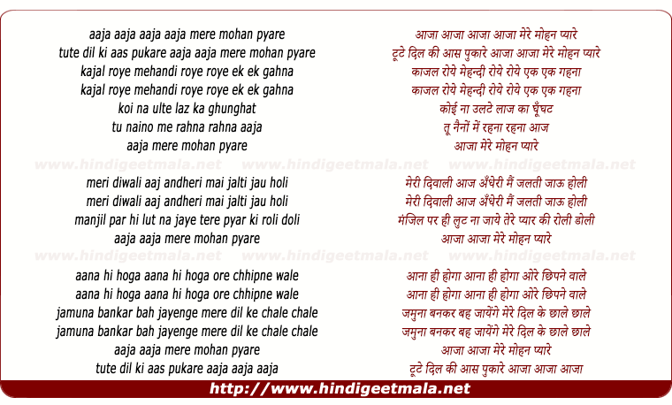 Lyrics of Aaja Mere Mohan Pyare - आजा मेरे मोहन प्यारे
