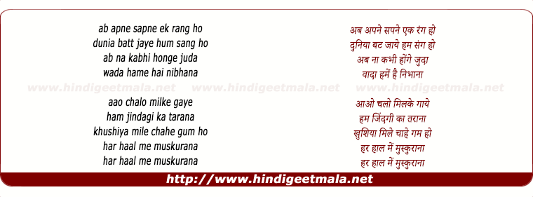 Lyrics of Aao Chale Milke Gayen (Sad) - अब अपने सपने एक रंग हो