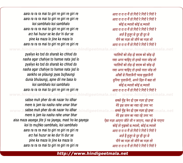 Lyrics of Aaraa Main To Giri Re Koi Sambhaalo - आरारा मैं तो गिरी रे कोई सम्भालो