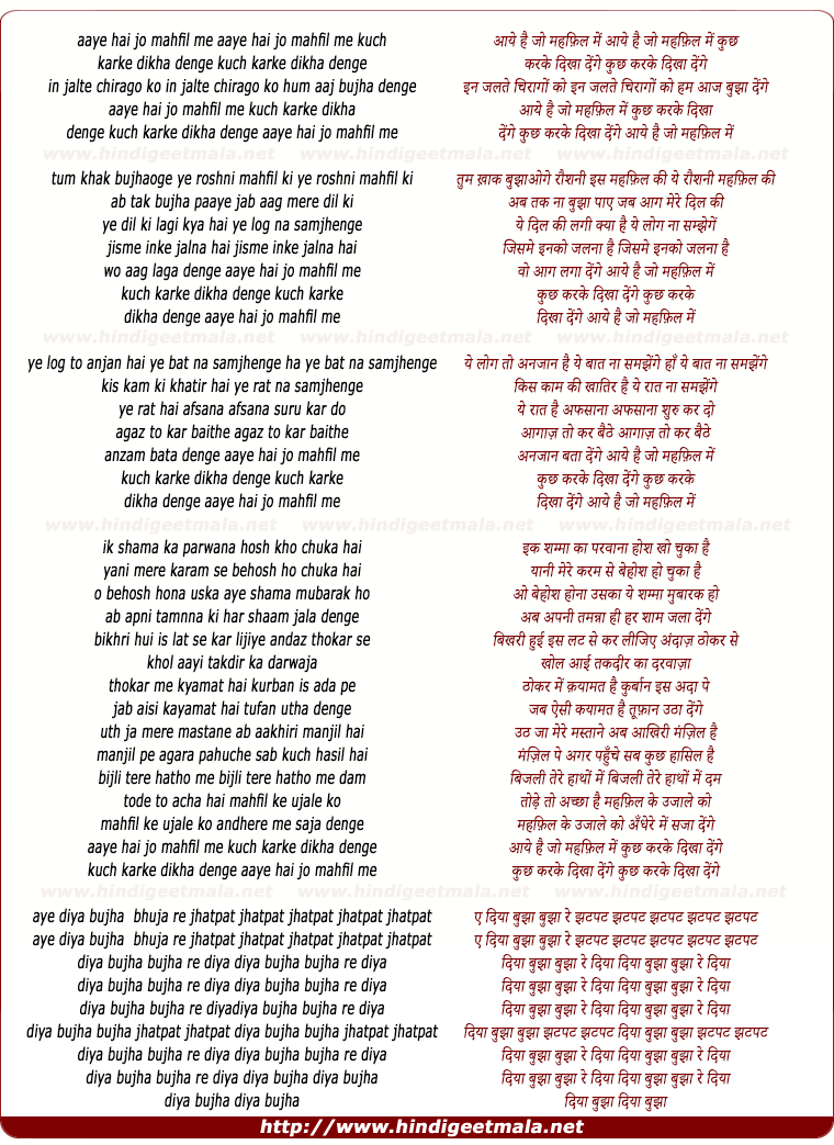 Lyrics of Aaye Hai Jo Mehfil Me, Kuch Karke Dikha Denge - आये है जो महफ़िल में ,कुछ करके दिखा देंगेaaye hai jo mahfil me aaye hai jo mahfil me kuch