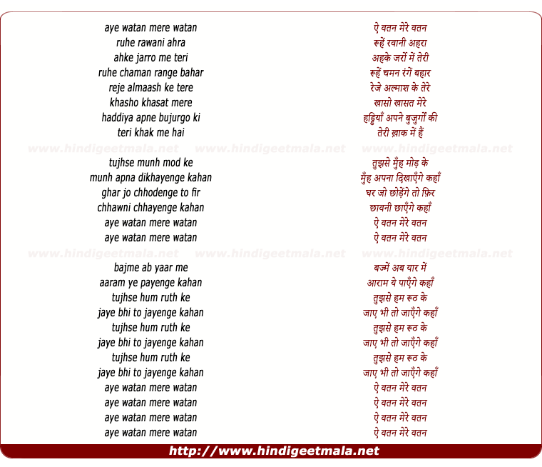 Lyrics of Ae Watan Mere Watan - ऐ वतन मेरे वतन