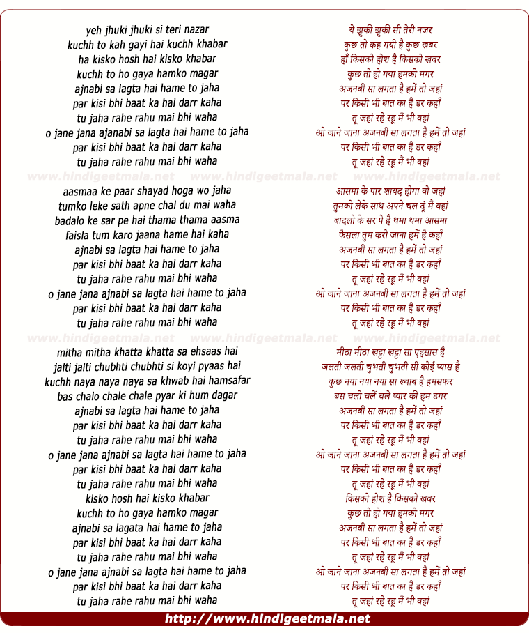 o jane jana ajnabi sa lagta hai hame to jaha