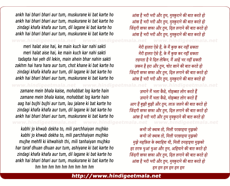 Lyrics of Ankh Hai Bhari Bhari - आंख है भरी भरी