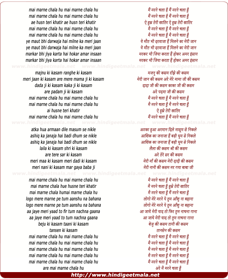 Lyrics of Are Ab Rokne Se Kyaa Fayada Mai Marne Chala Hu - अरे अब रोकने से क्या फायदा मैं मरने चला हूँ