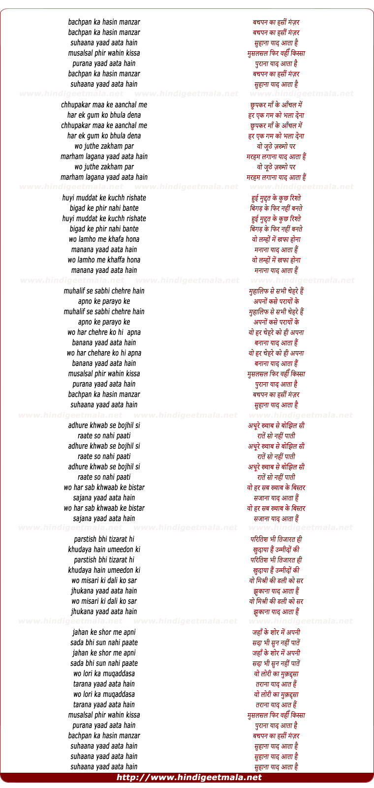 Lyrics of Bachpan Ka Haseen Manzar - बचपन का हसीं मंज़र