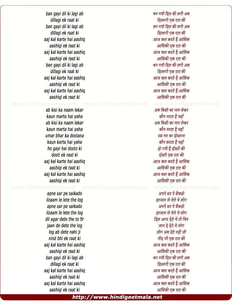 Lyrics of Ban Gayi Dil Ki Lagi - बन गयी दिल की लगी