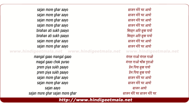 Lyrics of Bandish Blues - साजन मोरे घर आयो