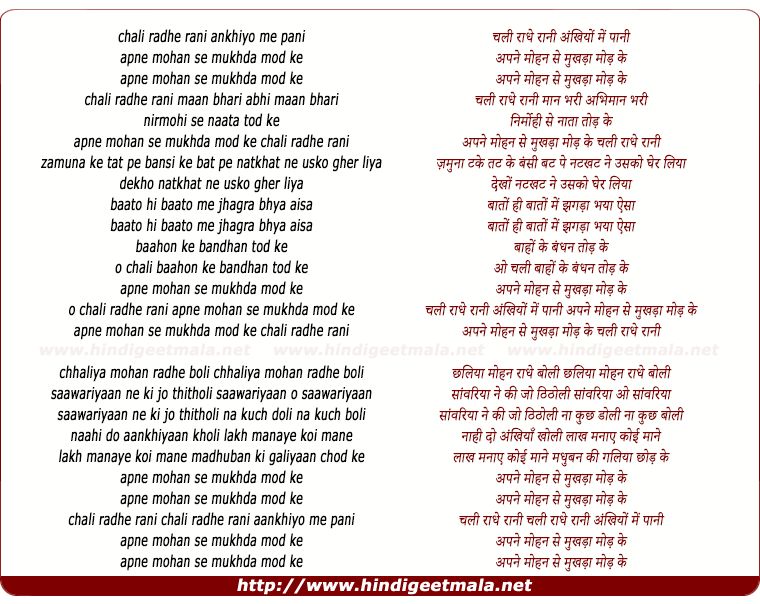 Lyrics of Chali Radhe Rani Ankhiyo Me Paani - चली राधे रानी अंखियों में पानी