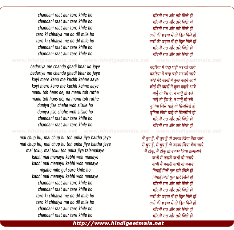 Lyrics of Chandani Rat Aur Tare Khile Ho - चाँदनी रात और तारे खिले हों