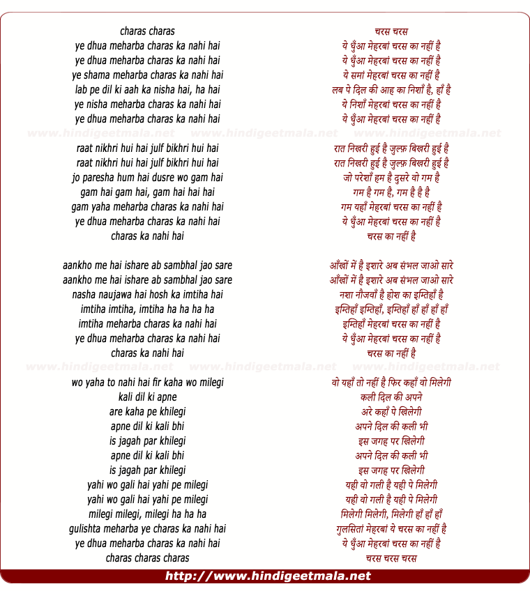 Lyrics of Charas Charas - चरस चरसcharas charas