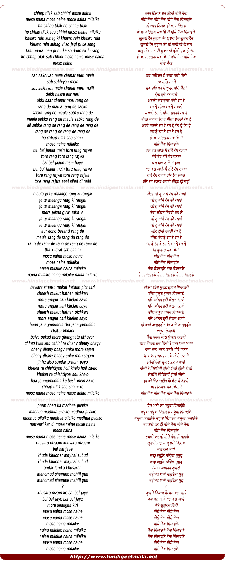 Lyrics of Chhap Tilak Sab Chheeni - छाप तिलक सब छिनी मोसे नैनाchhap tilak sab chhini mose naina