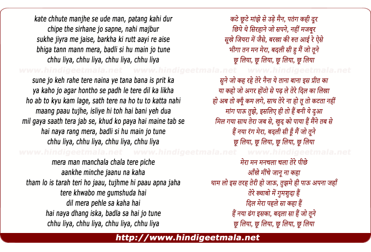 Lyrics of Chhu Liya - छू लिया