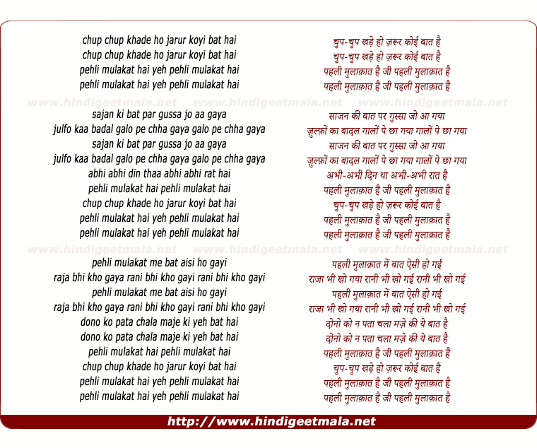 Lyrics of Chup Chup Khade Ho Zaroor Koyi Baat Hai - चुप-चुप खड़े हो ज़रूर कोई बात है