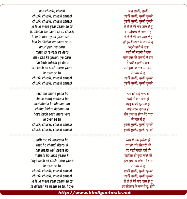Lyrics of Chuski Chuski - चुस्की चुस्की