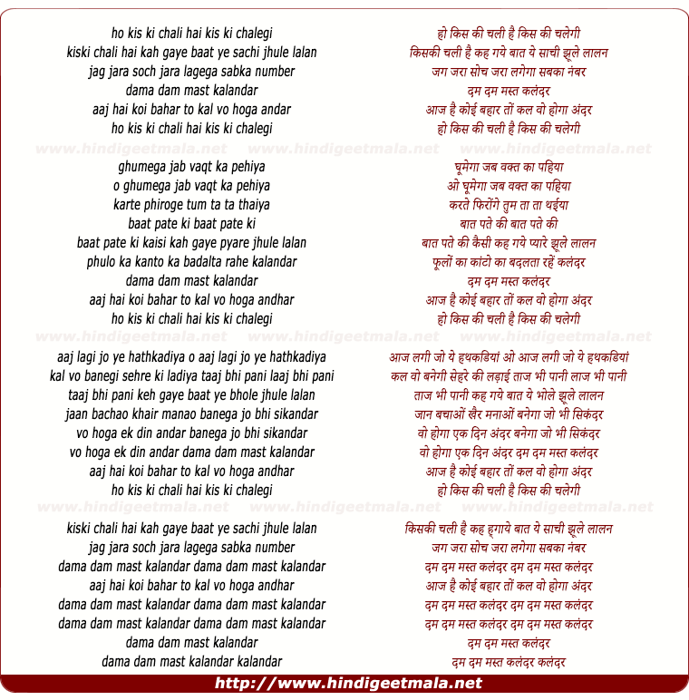 Lyrics of Dama Dum Mast Kalandar - दमा दम मस्त कलंदर