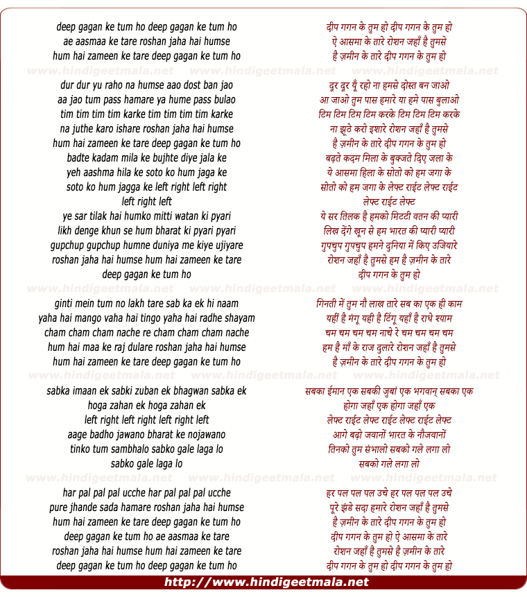 Lyrics of Deep Gagan Ke Tum Ho - दीप गगन के तुम हो