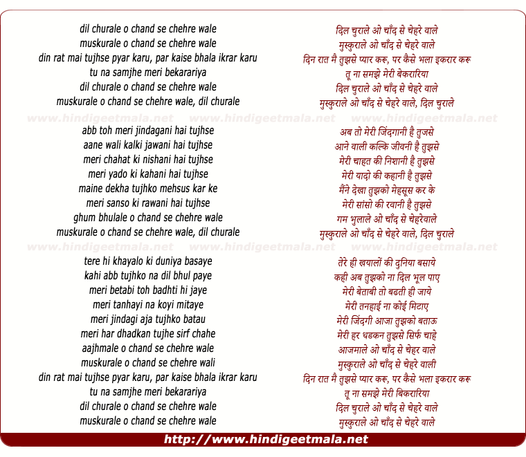 Comments for lyrics of song "Dil Churale O Chand Se Chehre"