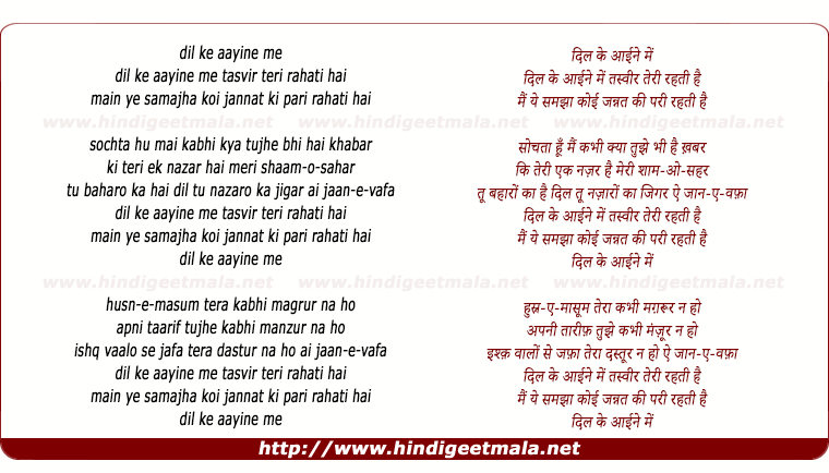 Lyrics of Dil Ke Aaine Mein Tasvir Teri Rahti Hai - दिल के आईने में तस्वीर तेरी रहती है