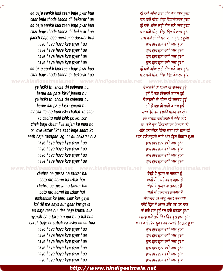 Lyrics of Do Baje Aankh Ladi Teen Baje Pyar Hua - दो बजे आँख लड़ी तीन बजे प्यार हुआ