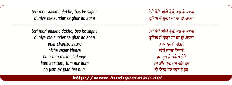 teri meri aankhe dekhe, bas ke sapna