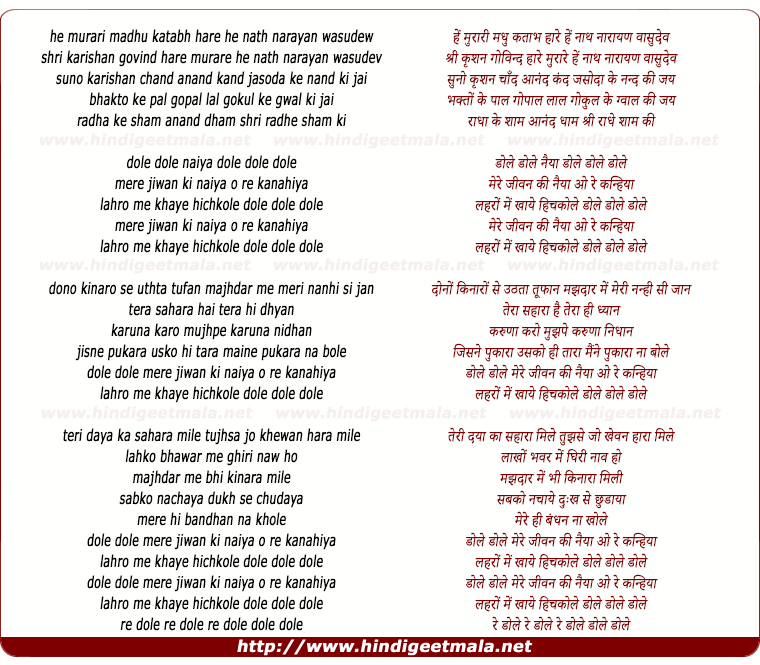 Lyrics of Dole Dole Mere Jeevan Ki Naiya - डोले डोले मेरे जीवन की नैया