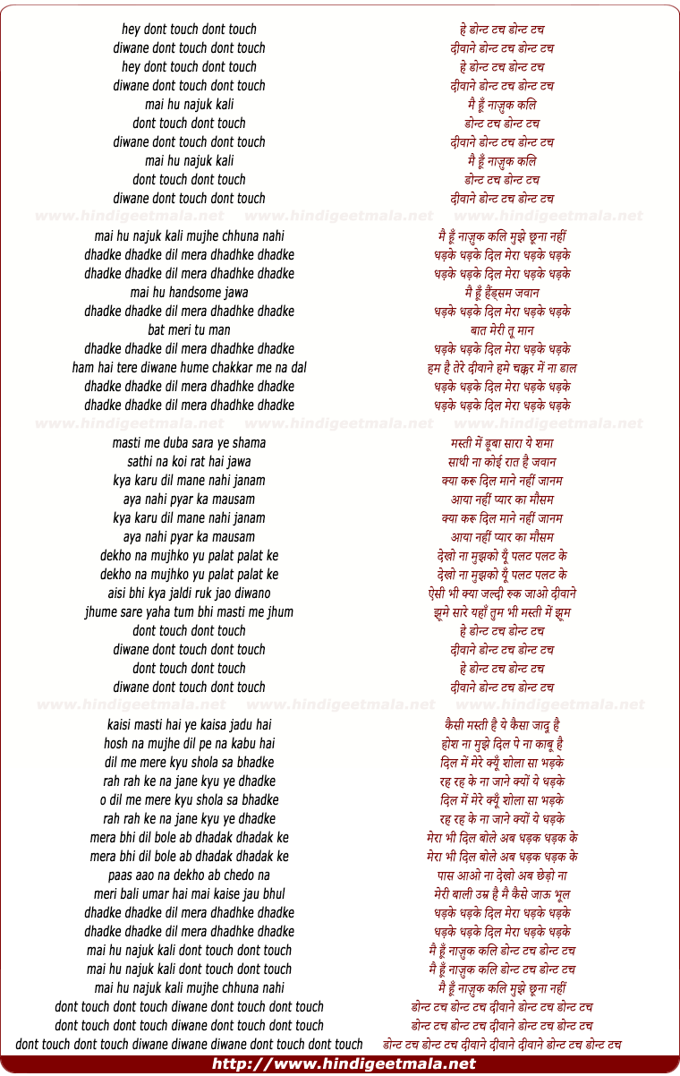 Lyrics of Don't Touch Don't Touch Diwane - डोन्ट टच डोन्ट टच दीवाने hey dont touch dont touch