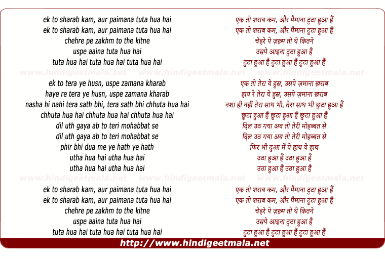 Lyrics of Ek To Sharab Kam 2 - एक तो शराब कम