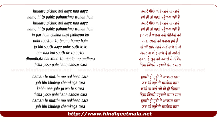 Lyrics of Hamari Hi Mutthi Me (Sad) - हमारी ही मुट्ठी में