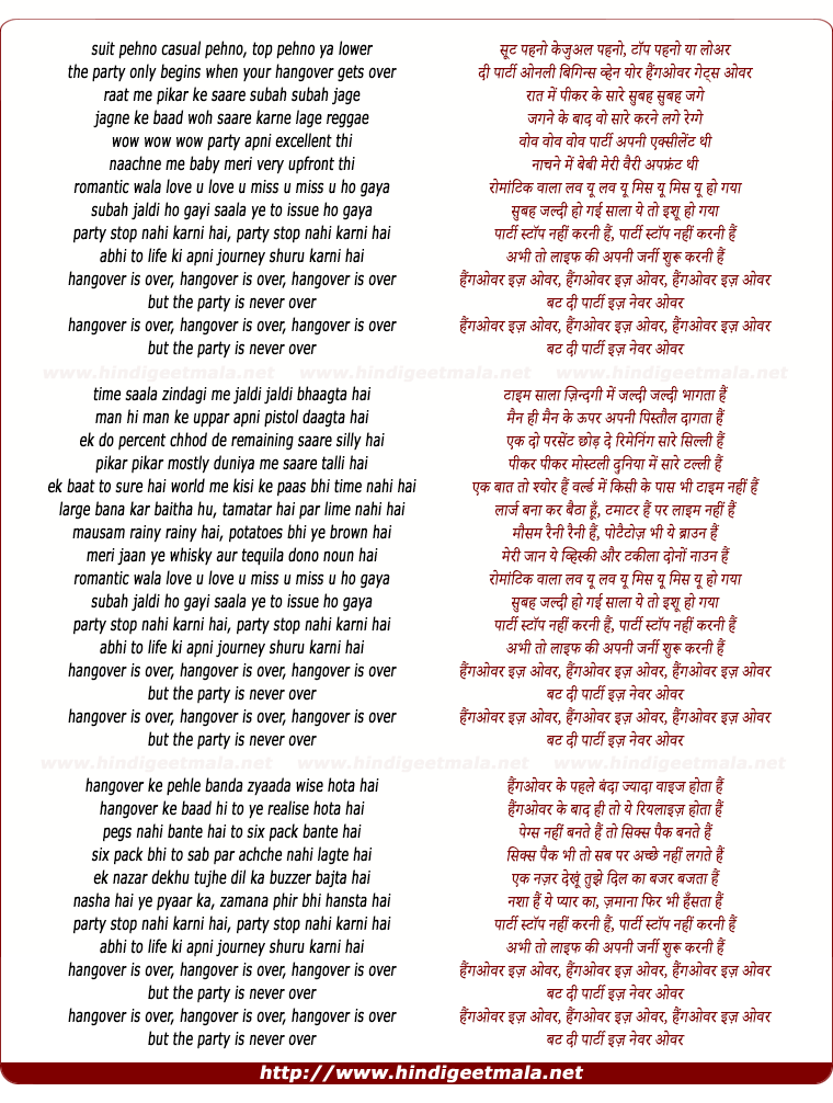 Lyrics of Hangover Is Over - सूट पहनो केजुअल पहनो, टॉप पहनो या लोअर