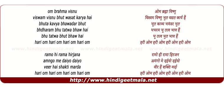 Lyrics of Om Brahma Visnu - ओम ब्रह्मा विष्णु