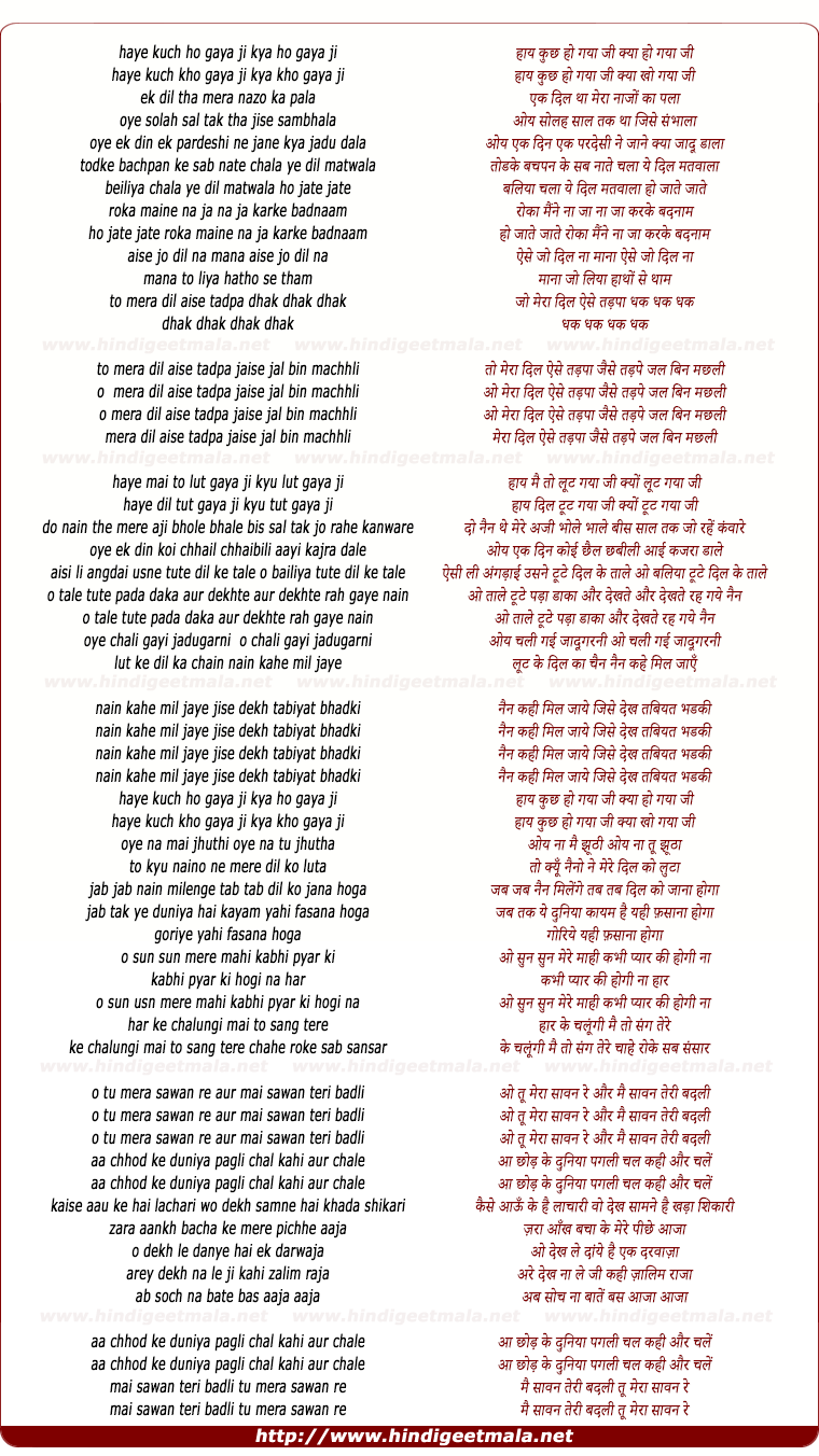 Lyrics of Haye Kuchh Ho Gaya Ji - हाय कुछ हो गया जी