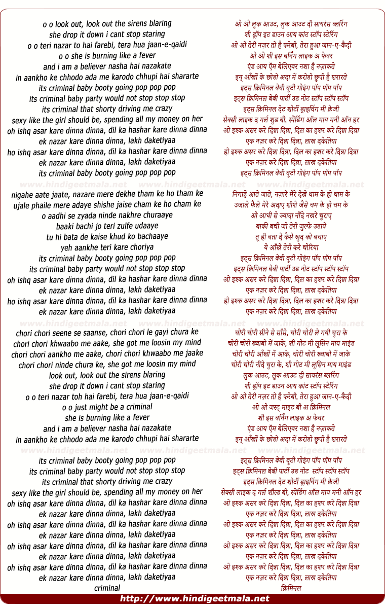 Lyrics of Its Criminal Baby - इट्स क्रिमिनल बेबीo o look out, look out the sirens blaring