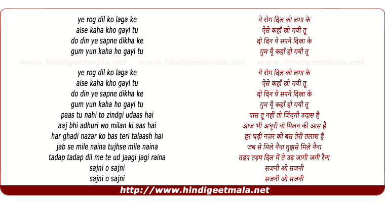Lyrics of Jal Me Jaise Pyasi Machariya (Male) - ये रोग दिल को लगा के