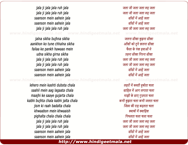 Lyrics of Jala Ji Jala, Jala Ruh Jala - जला जी जला, जला रूह जला