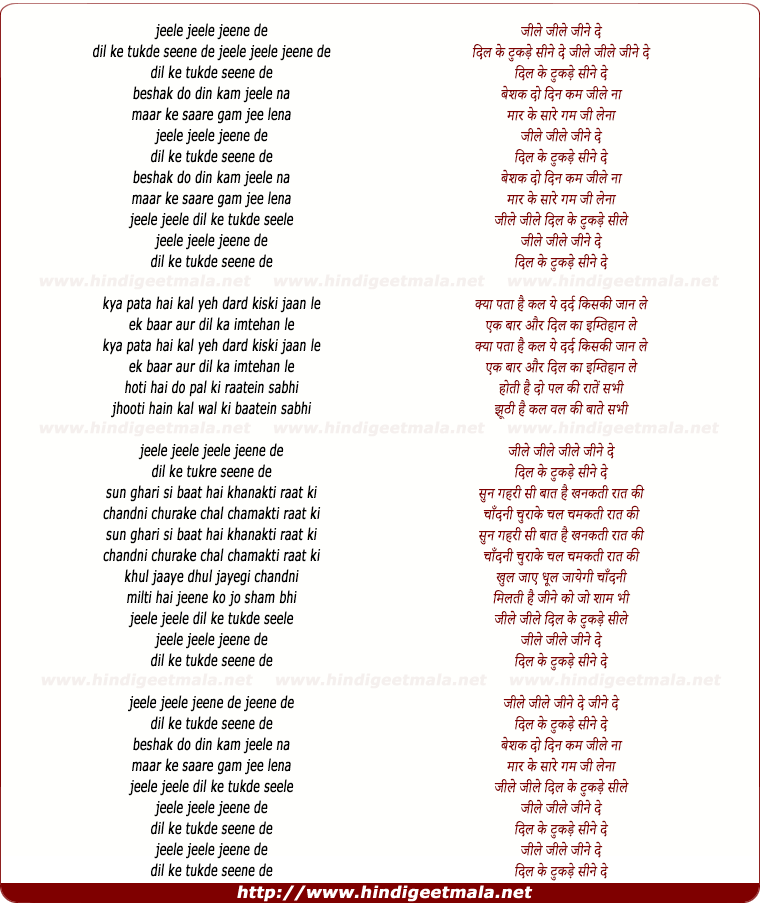 Lyrics of Jeele Jeele Jeene De - जीले जीले जीने देjeele jeele jeene de
