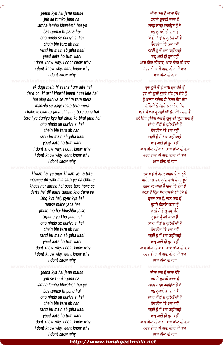 Lyrics of Jeena Kya Hai Jaana Maine - जीना क्या हैं जाना मैंने
