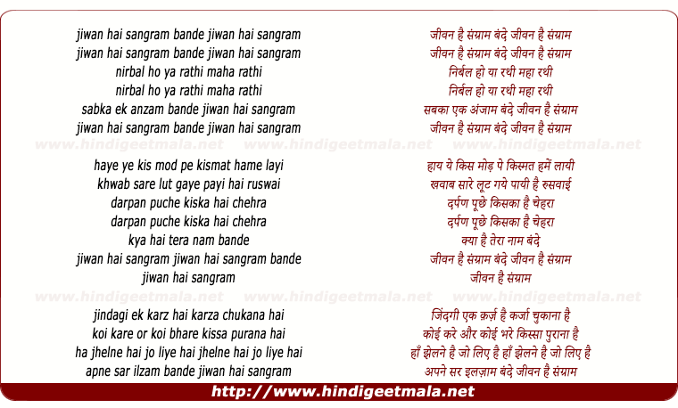 Lyrics of Jivan Hai Sangram Bande - जीवन है संग्राम बंदे