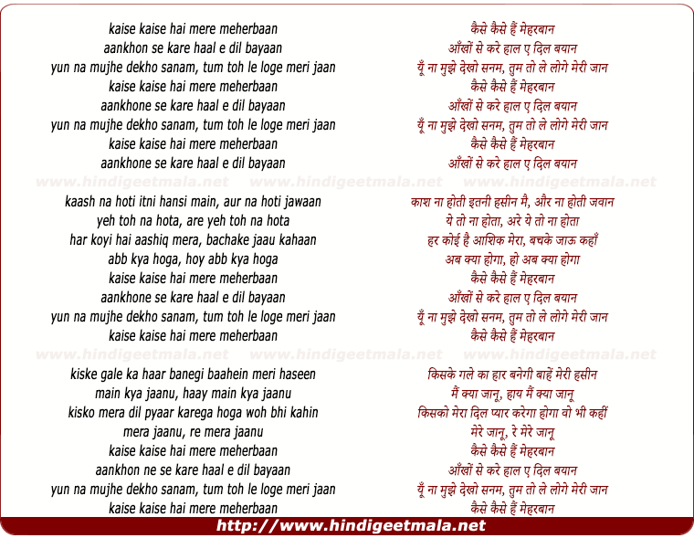 Comments for lyrics of song "Kaise Kaise Hai Mere Meherban"