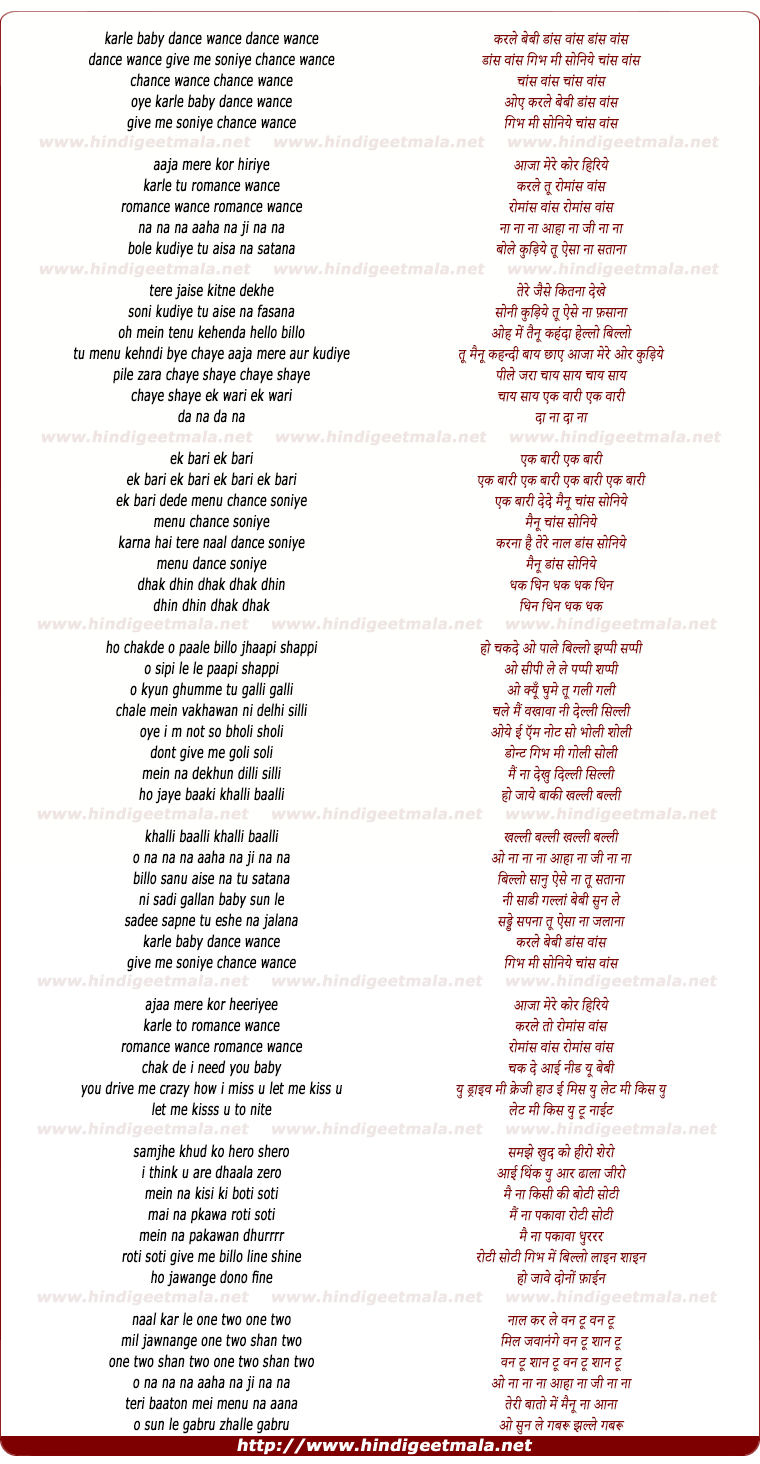 Lyrics of Karle Baby Dance Wance Give Me - करले बेबी डांस वांस गिव मी