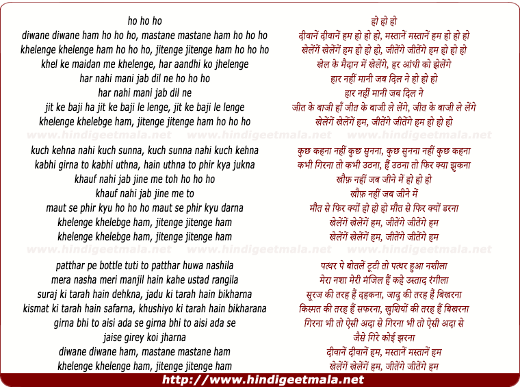 diwane diwane ham ho ho ho, mastane mastane ham ho ho ho