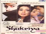 | Film cast: | Aftab Shivdasani, Shriya Saran, Anupam Kher, Rati Agnihotri, Rana Jung Bahadur, Indraneil Sengupta, Aarti Mehta | | Singer: | Alka Yagnik, Udit Narayan, Anuradha Paudwal, Kumar Sanu, Sonu Nigam, Shreya Ghoshal, K K, Sunidhi Chauhan | | Lyricist: | Sameer | | Music Director: | Himesh Reshammiya, Shekhar Ravjiani, Vishal Dadlani, Devendra, Yogendra, Raju Rao | | Film Director: | Anupam Sinha | | Film Producer: | Vibha Bhatnagar, Ragini Sona | | External Links: | Shukriya at IMDB Shukriya at Wikipedia | | Watch Full Movie: | Shukriya at YouTube Shukriya at YouTube |