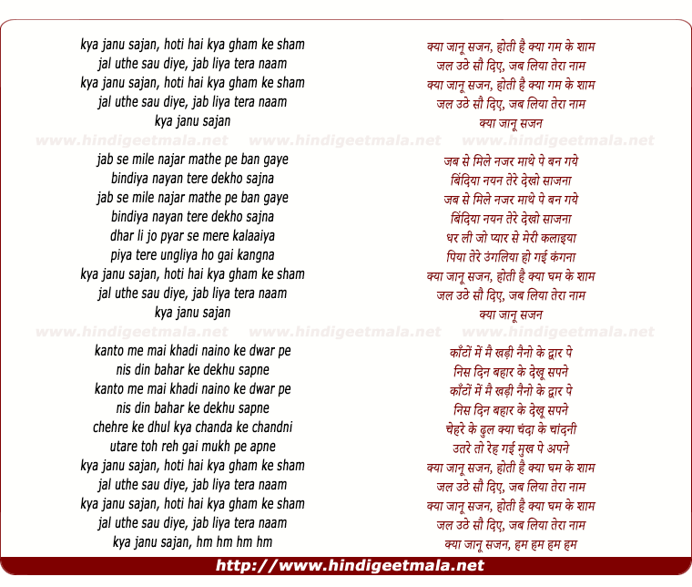 Lyrics of Kya Janu Sajan Hotee Hai Kya Gham Kee Sham - क्या जानू सजन होती है क्या गम के शाम