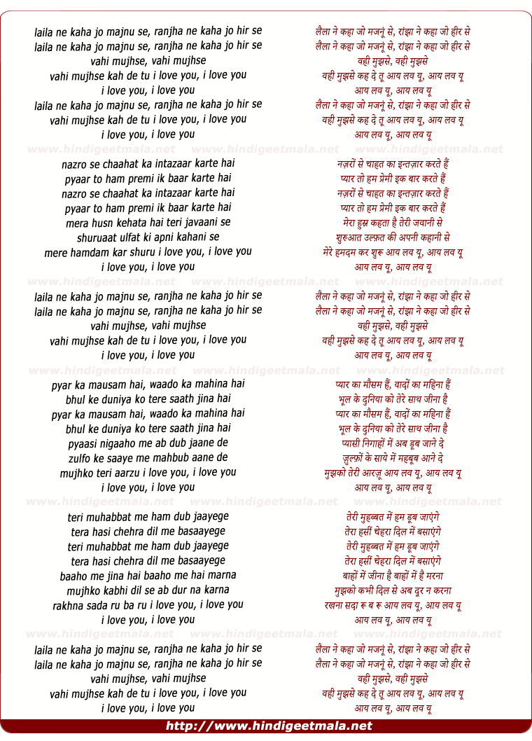 Lyrics of Laila Ne Kaha Jo Majnu Se - लैला ने कहा जो मजनूं सेlaila ne kaha jo majnu se, ranjha ne kaha jo hir se