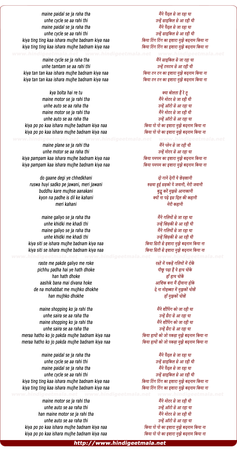 Comments for lyrics of song "Maine Paidal Se Ja Raha Tha"
